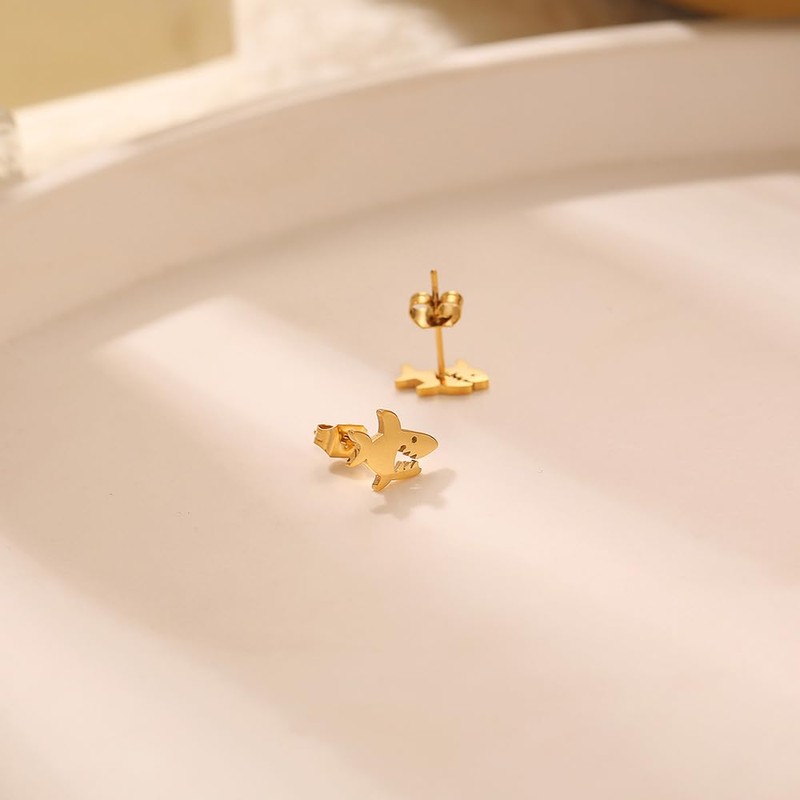 Stainless Steel Women Delicate Tiny Shark Stud Earrings 18K Gold Plated Animal Shark Earrings Jewelry Gift For Him, Stainless Steel, No Gemstone