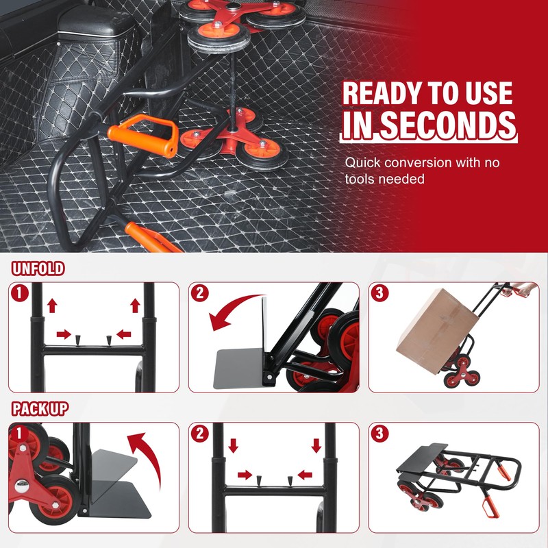 - ✅ Compact & Foldable Storage:Fold your stair climber dolly in seconds and tuck it away under the bed, in your trunk, or a closet. Ideal for small spaces, garages, or mobile professionals.
