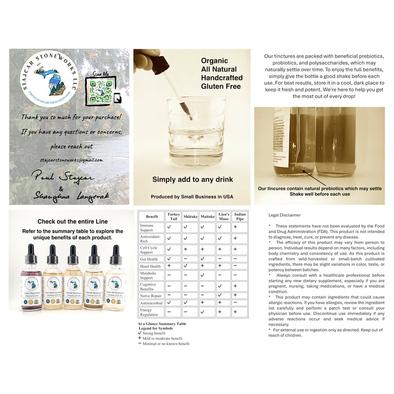 Stajcar Stoneworks Stajcar Stoneworks LLC Shiitake Mushroom Tincture, 2 fl. Oz, Alcohol-Based Extract, Organic, Gluten-Free