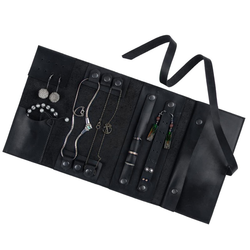 - Our jewelry travel roll makes an excellent gift for various occasions! Travel and store your earrings, rings, Mother's Day lockets, and bangles conveniently in our case and keep your necklaces organized too! Our leather roll has also a large secure pocket for anything especially valuable for you.