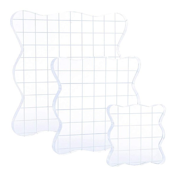 Apply clear stamps to these durable stamp blocks to add stamped designs to a variety of craft projects. Each block features a clear design so you can see precisely where you are stamping, and easy-to-see grid lines make aligning your designs easy.  Excess ink washes off the blocks easily with stamp cleaner or a solution of mild soap and water. There are 3 sizes for your choice or you can buy all of them for different clear stamps. Use this set of clear acrylic stamp mounting blocks for accurate placement of your clear stamps.
