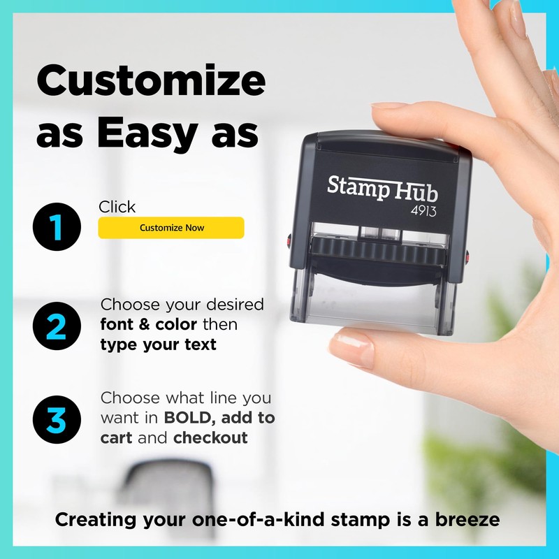 - Self-Inking Personalized Stamp: Get a custom stamp with up to 4 lines of text. Ideal for names, addresses, weddings, businesses, bank deposits, and orders. Click "Customize Now," choose your font, color, and bold lines. Our design team ensures precision and quality.