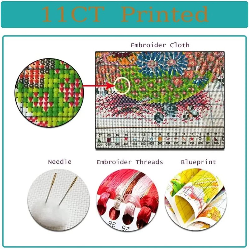 - 【EASY TO STITCH】This kit includes a timeless and simple cross-stitch design(pre-printed pattern)with simple, easy-to-follow instructions, perfect for those who are new to cross-stitch. Blunt head needle, wouldn't hurt hands.
