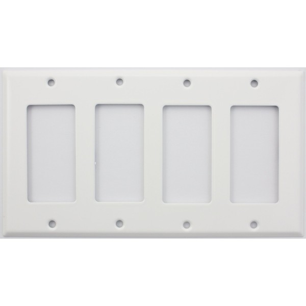Stamped Steel Smooth White 4 Gang GFI/Rocker Switch Plate