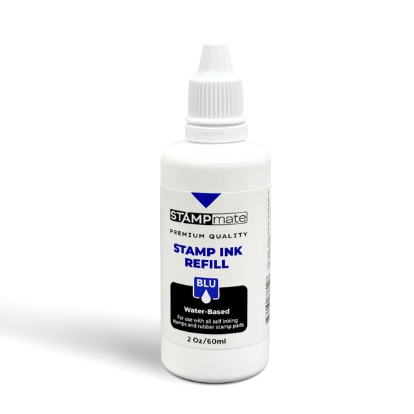 Stampmate Premium Refill Ink for Self-Inking Stamps and Stamp Pads - 2 oz. Bottle (Blue)