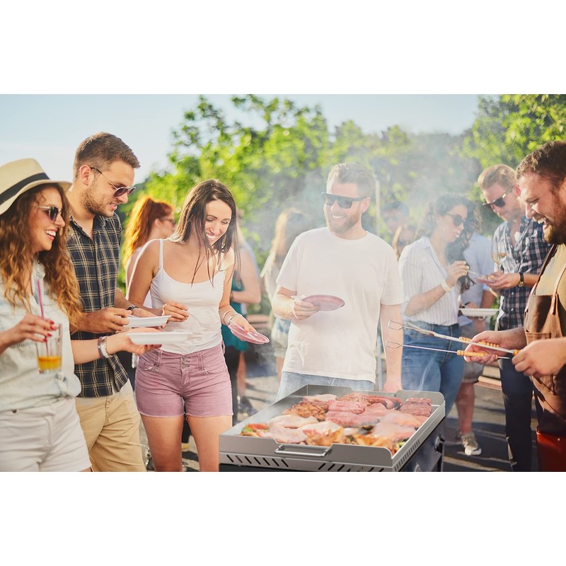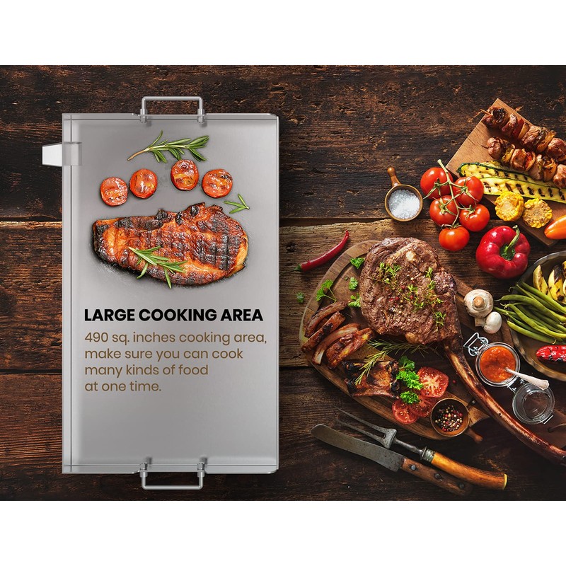 - LARGE COOKING AREA: With 28” x 16.5” (470 sq. Inches) large surface, the grill accommodates enough grilled food for a large backyard or park barbecue party.