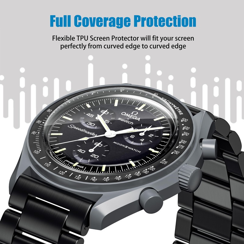 - 【Ten en cuenta】El material avanzado de TPU cuenta con un increíble poder autorreparable al protector de visualización Omega MoonWatch. Pequeñas burbujas y pequeños arañazos desaparecerán en 24 horas. Protector de visualización sin vidrio.