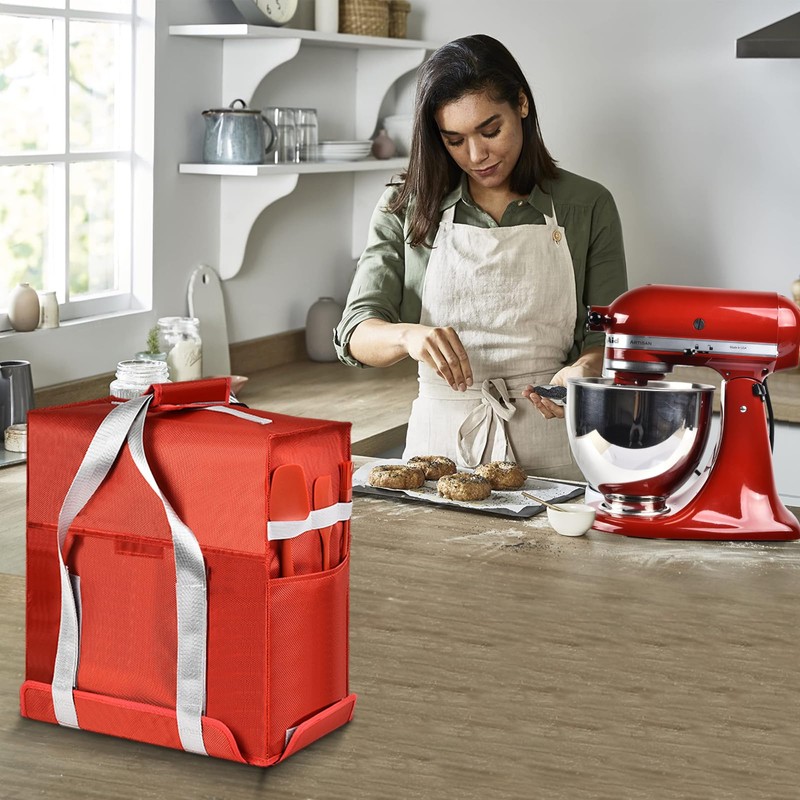 Stand Mixer Cover Compatible with KitchenAid Stand Mixer 4.5-5 Quart, Portable Travel Storage Case Bag with Multiple Pockets and Handle for Kitchen Aid Mixer Accessories (Box Only) - Red