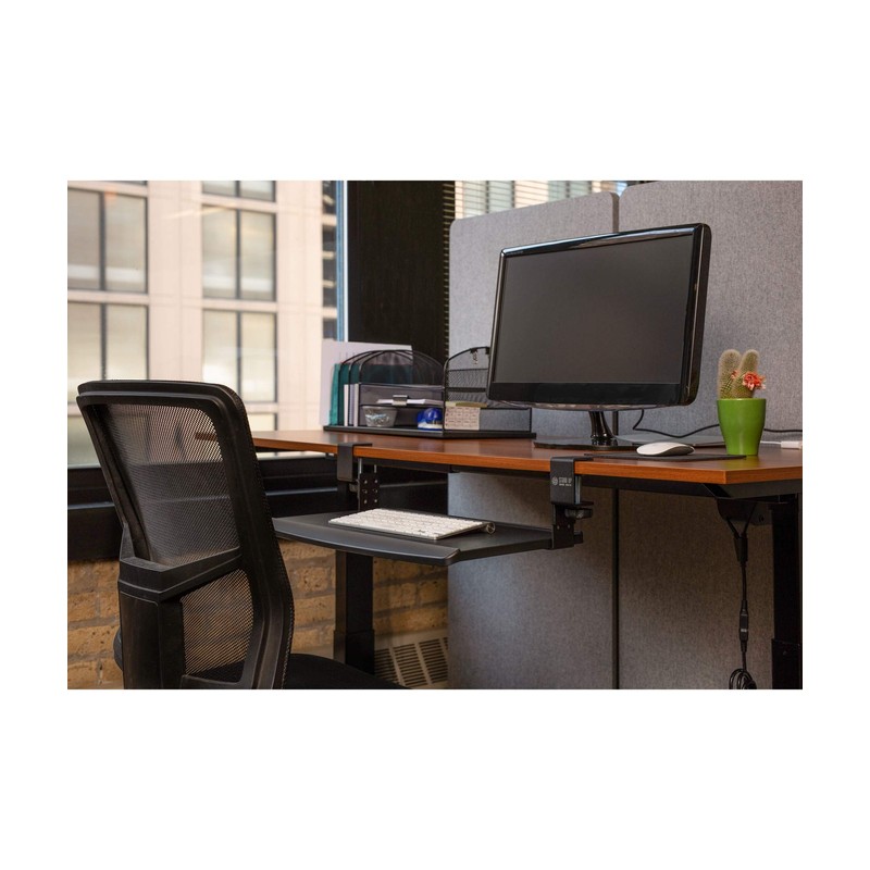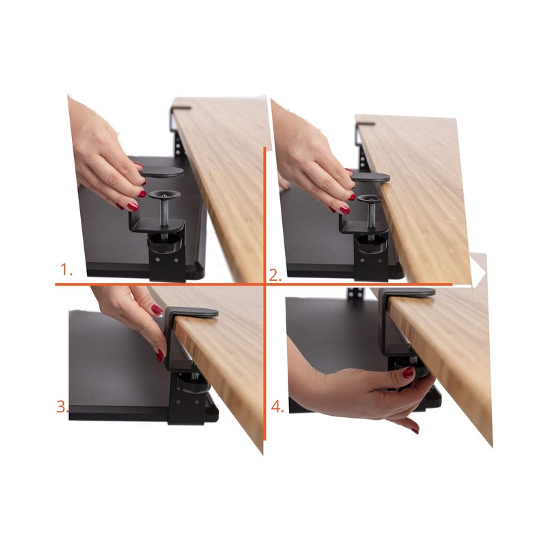 - Places your keyboard at an optimum, ergonomic height for comfortable typing; tool and modification-free attachment to front edge of desk