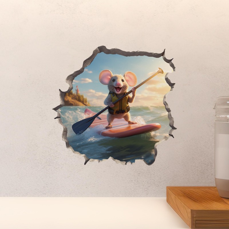 Stand-Up Paddleboard in Mouse Hole Decal - Mouse Hole 3D Wall Sticker