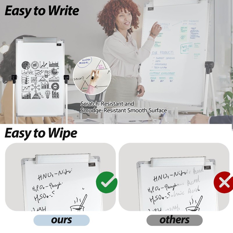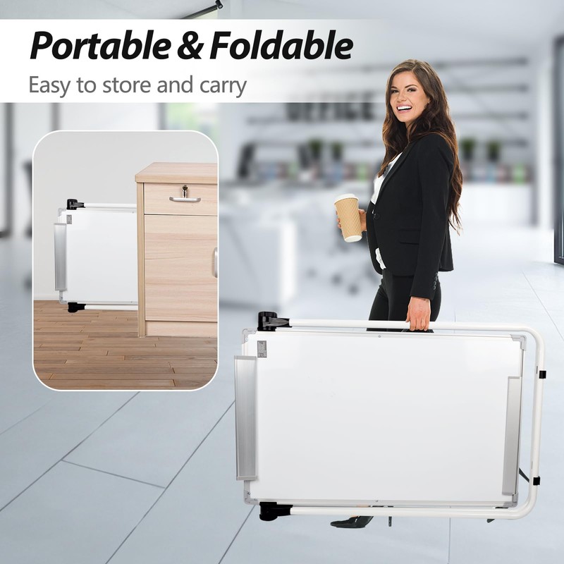 - DOUBLE-SIDED & EASY TO WRITE AND WIPE: We adopt double-sided magnetic surface design for this portable whiteboard, it supports two people writing at the same time. Scratch-resistant and smudge-resistant smooth surface provides an excellent writing experience erases effortlessly.