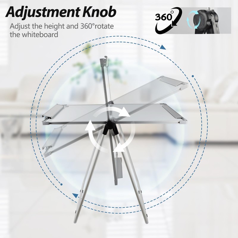 - ADJUSTABLE HEIGHT & 360° ROTATION: The adjustment knob can easily achieve the white board lifting and 360-degree rotation.You can adjust the height of the whiteboard easel from 40" to 71", suitable for adults and children. Tighten the knob after adjusting the position to ensure stability.