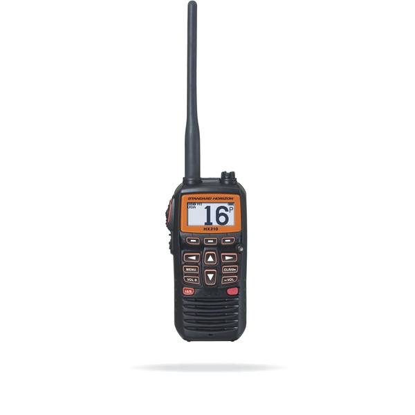 The HX210 is a VHF handheld device for marine use. The device is submersible, floats and has 6 watts of power. The radio has assigned all channels of the USA, International or Canadian as well as Emergency Channel 16.