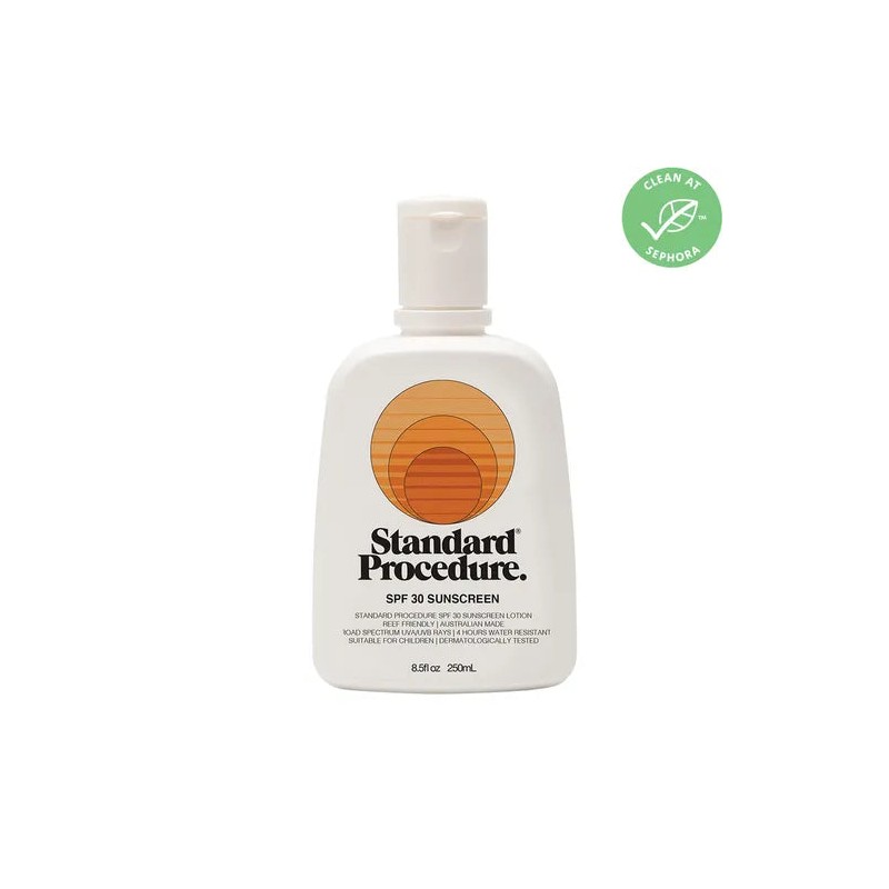 Elevate your sun protection game with the Standard Procedure SPF30 Sunscreen, a trusted companion for shielding your skin from harmful UV rays while ensuring a comfortable, non-greasy experience.When it comes to safeguarding your skin from the sun's harsh rays, the Standard Procedure SPF30 Sunscreen is a dependable choice. This sunscreen is meticulously designed to provide reliable protection against both UVA and UVB rays, all while maintaining a lightweight and non-greasy feel. Let's explore its standout features and benefits.What are the features and benefits of Standard Procedure SPF30 Sunscreen? Broad Spectrum Defense: Offering comprehensive protection, this sunscreen shields your skin from both UVA and UVB rays, ensuring all-around sun safety. SPF30: With an SPF30 rating, it provides moderate yet effective sun protection, suitable for everyday activities in the sun. Water-Resistant: Whether you're swimming, sweating, or simply out and about on a sunny day, this sunscreen's water-resistant formula ensures your protection stays intact. Non-Greasy Formula: Say goodbye to that heavy, sticky sensation some sunscreens leave behind. The Standard Procedure SPF30 Sunscreen has a lightweight, non-greasy formula that keeps your skin feeling comfortable. Dermatologist Tested: It's been rigorously tested by dermatologists to ensure it's gentle on all skin types, including sensitive skin. Fast Absorption: No need to wait around for it to dry—this sunscreen absorbs quickly, allowing you to go about your day seamlessly. Who is Standard Procedure SPF30 Sunscreen best for?If you're looking for an everyday sunscreen to wear during your daily routine, this SPF30 option provides ample protection. Whether you're gardening, picnicking, or playing sports, this sunscreen offers the defense you need for your outdoor adventures. It's perfect for water activities like paddleboarding, kayaking, or even a leisurely swim, thanks to its water-resistant formula. Dermatologist-tested and non-greasy, it's gentle on sensitive skin, making it a great choice for those with delicate complexions.