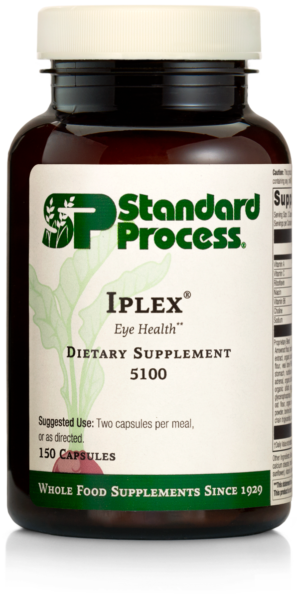 Iplex supports ocular health.Since 1929, Standard Process has been the visionary leader in whole food nutrient solutions. We apply systems thinking to holistic nutrition that empowers practitioners to transform lives. Dedicated to the whole food philosophy of our founder, Dr. Royal Lee, our goal is to carry on his mission to provide nutrients for the body that are as close as possible to how they are found in nature.Our products include foods that are prepared in a way that safeguards their nutritional value. The majority of these ingredients are grown locally on our certified organic farm and may require chopping, dicing, juicing and/or drying for use in our products. The resulting whole food ingredients are then added to a formula that may include whole food extracts, animal tissue extracts and concentrates, botanicals, whole food isolates and synthetic ingredients. These highly complex combinations contain a variety of elements designed to trigger trophic effects that support the body’s healthy balance and wellness.