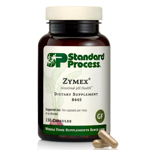 Standard Process Zymex Capsules - Digestive Health Support - Supports Intestinal Health & Balanced pH - Gut Health Supplement with Rice Bran, Spanish Moss, Carrots & Beets - Non-Dairy - 150 Capsules