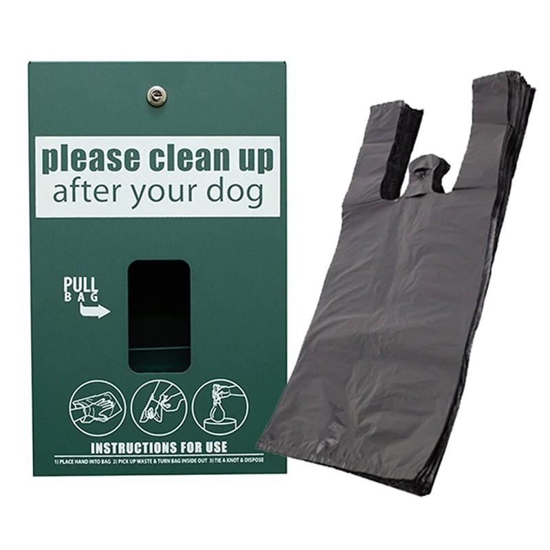- INCLUDES 400 waste bags. Weather-proof locking bag dispenser.