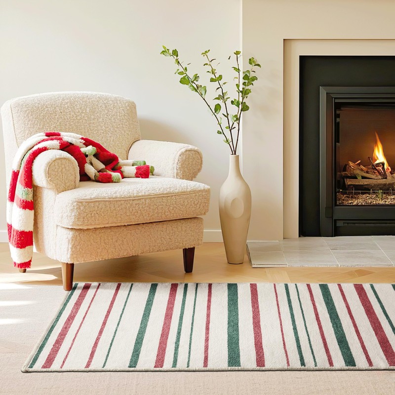 StangH Runner Rug 2x8 Hallway Washable Kids Rug Low-Pile Print Red Green Stripe Christmas Runners Non-Slip Pet Friendly Faux Wool Carpet Kitchen Laundry Bathroom Bedroom