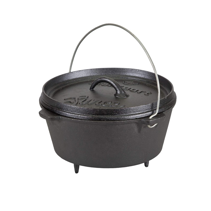 - Dutch ovens with legs and rimmed lids are recommended for open fire or charcoal cooking