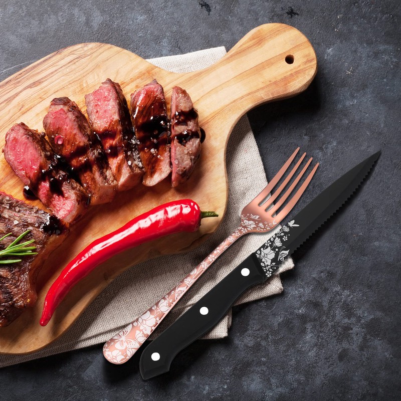 - Unique Design: This cutlery set are decorated with beautiful laser print of butterfly and floral, stylish shape with rose gold finish add a touch of elegant and luxurious dining sense on your table setting.