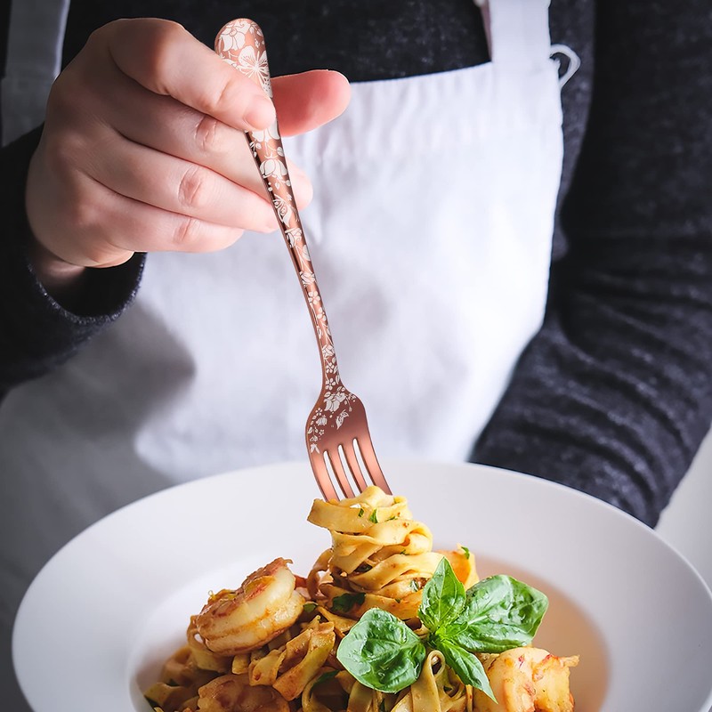 - Superior Quality: Our copper flatware is made of food grade premium stainless steel, resist rust and corrosion, will not bend or chip, sturdy and durable for daily use, Easy to clean and also dishwasher safe.