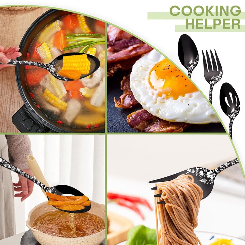 - 【Stylish and Elegant Design】The serving silverware is mirror polished, and the surface of the cutlery always remains shiny. Unlike traditional silverware, each piece of silverware has a laser pattern, and the delicate butterfly and flower patterns make the cutlery more luxurious. Provide a beautiful decoration for your table and make your food look more attractive.