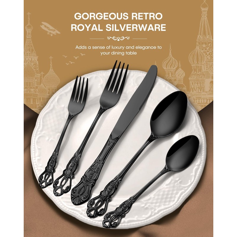 - PRETTY BAROQUE STYLE: The palace flatware tableware has a beautiful carved baroque design on the handle with a glossy mirror polish, very regal and royal looking. Add elegance and beauty to your dining table, and make the dining experience more enjoyable. This gothic silverware set available in multiple colors is a pretty gift option for the upcoming holidays, such as Thanksgiving, Mother's Day, Valentine's Day, Easter, Christmas, Halloween, New Year, or other events, Birthday, Housewarming, Wedding, etc
