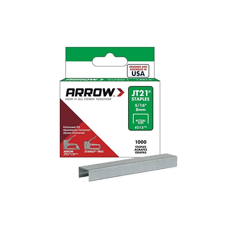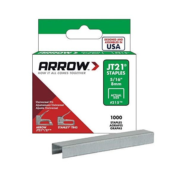- Arrow 215 Staple, 7/16 in W Crown, 5/16 in L Leg, Steel, 0.03 ga Gauge, 1000, Pack