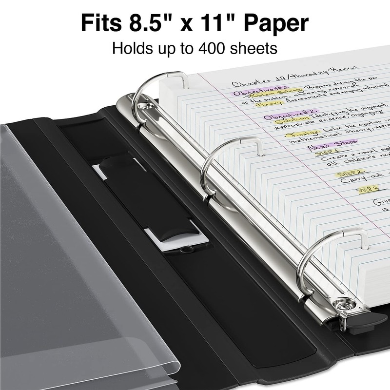 • Black better binders to protect work documents and keep them organized. 400-sheet capacity for organizing large projects.
