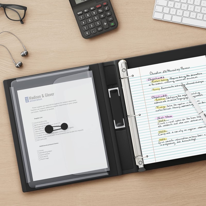 - Black better binders to protect work documents and keep them organized. 400-sheet capacity for organizing large projects.