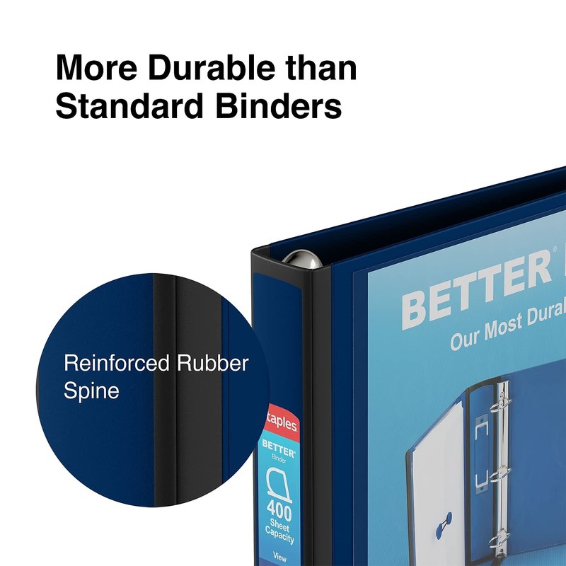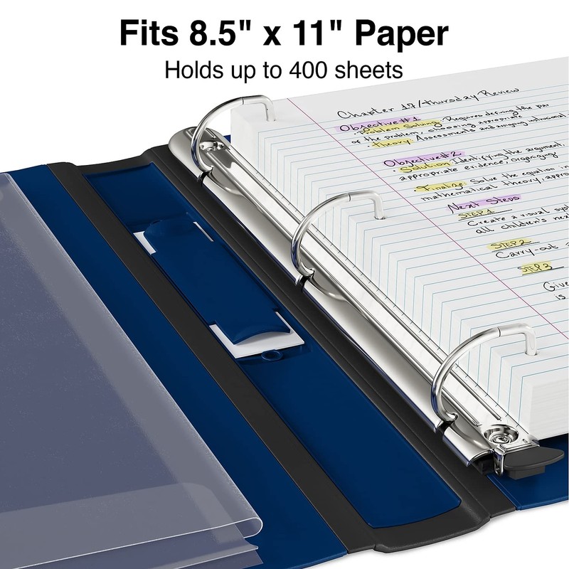 - Navy blue better binder to protect work documents and keep them organized. 400-sheet capacity for organizing large projects.