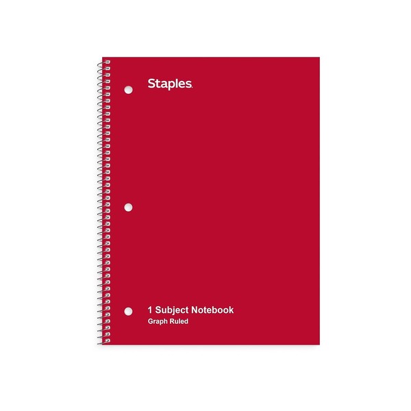 STAPLES Spiral Notebook, 8” x 10.5”, Graph Ruled (5x5), Red
