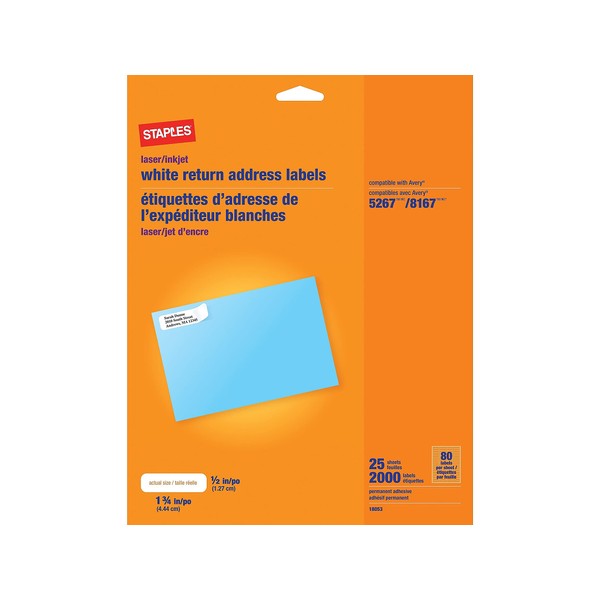 Staples 511509 Laser/Inkjet Address Labels 1/2-Inch x 1 3/4-Inch White, 2000 Labels/BX