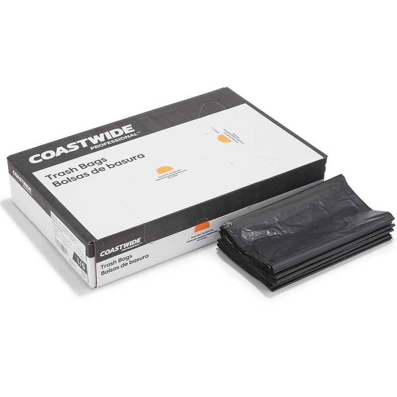 Staples COASTWIDE Trash Bg 40-45 Gal 40X46 Reprocessed Resin 1.3 Mil Black 100 Ct