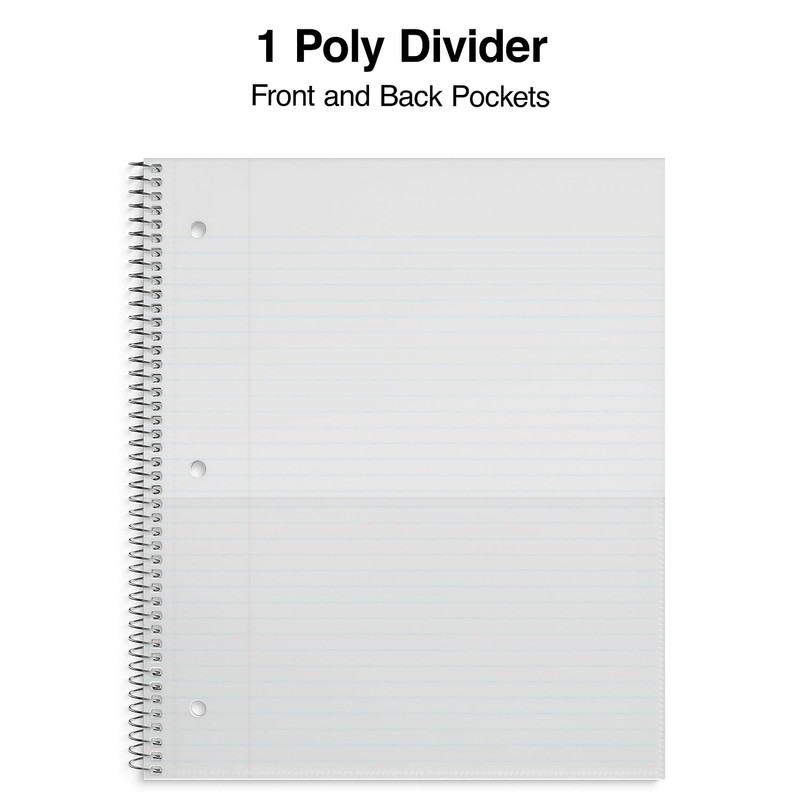 - 100 sheets of college-ruled paper for efficient use of space. Pocket divider.