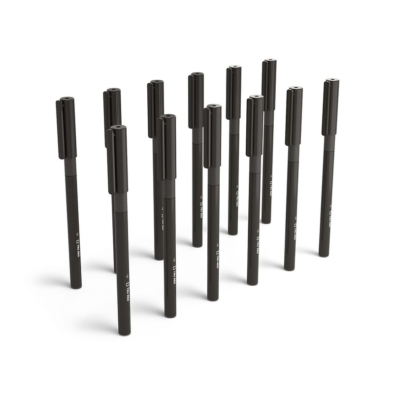 Ballpoint stick pen for clean, consistent writing. Low viscosity black ink for smoother writing experience. 1.0mm medium point spreads ink perfectly. Lightweight round barrel for comfortable, controlled writing. Convenient pocket clip to attach pen to notebooks, pockets, and more. Rubberized grip for added comfort Write comfortably through long meetings with this 12-pack of TRU RED black comfort-grip medium point ballpoint pens. Produce precise, streak-free text with these ballpoint pens. The low-viscosity black ink makes writing smoother and produces text that looks sharp and professional without skipping. Rubberized grips keep you comfortable whether you're brainstorming or journaling, while the round barrels help you write with precision. Medium point tips let these TRU RED black comfort-grip ballpoint pens deliver bold lines that show up clearly on paper.