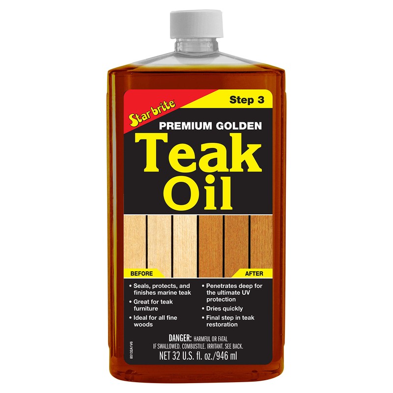 STAR BRITE Premium Golden Teak Oil - Ultimate Sealer, Preserver & Finish for Outdoor Teak & Fine Woods - Ideal for Boats, Furniture, Shower Stools - 32 OZ (085132)