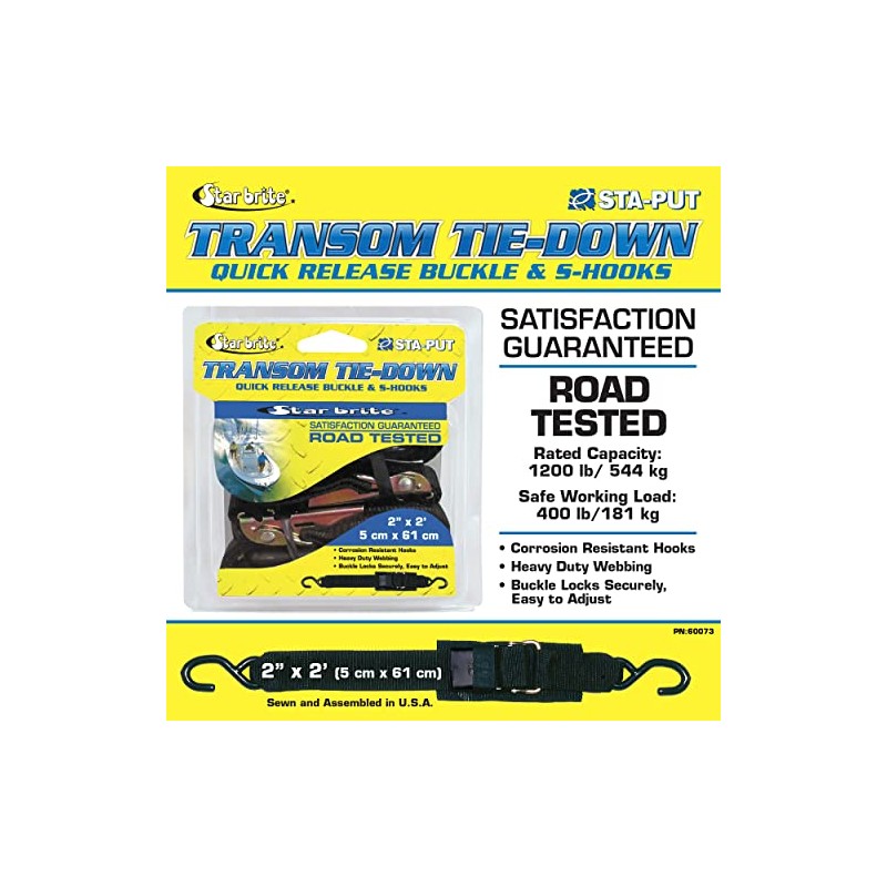 STAR BRITE Transom Tie Down 2" x 2' w/Quick Release Buckle and Coated "S" hooks (060073)