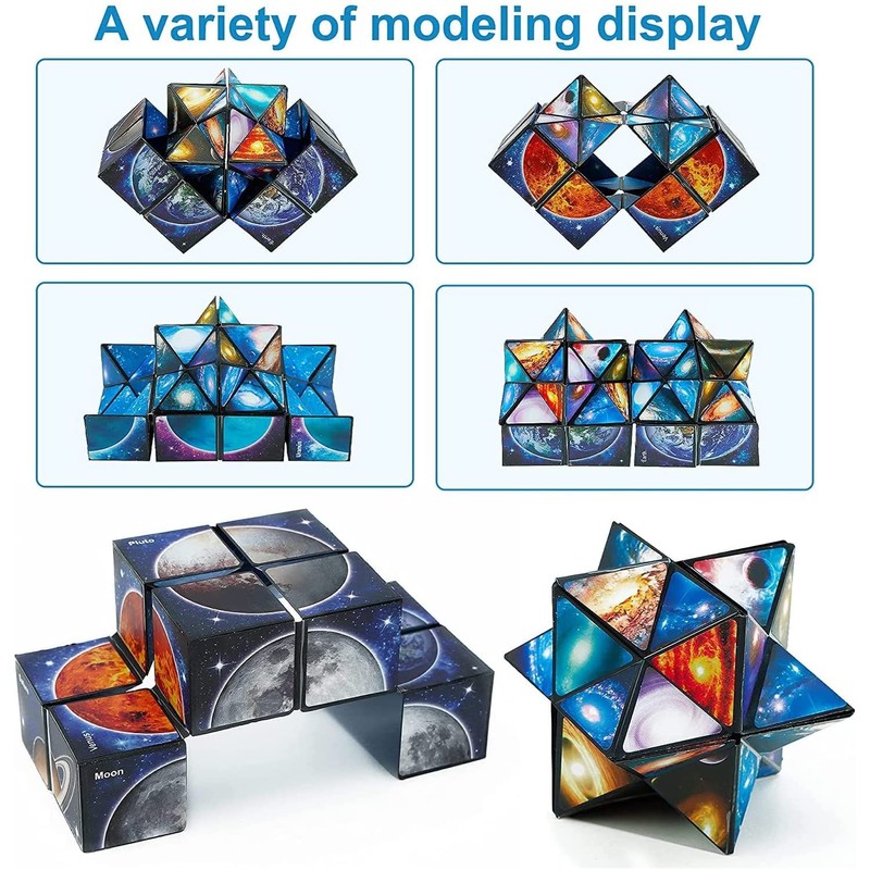 - 【3D Infinity Cube Fidget Toy】The color is a beautiful galaxy space, including Saturn, Uranus, Pluto, Earth, Moon, Venus, and other colorful and magical starry sky stickers that help kids know more about the solar system.