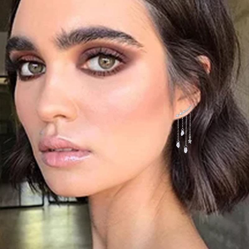 - CLAWER EARRINGS: Dainty crawler earrings are the perfect gift,the total length of the crawler earrings tassel star women's earrings is 40 mm (1.58 inches),It can be said to be a fashion earring.