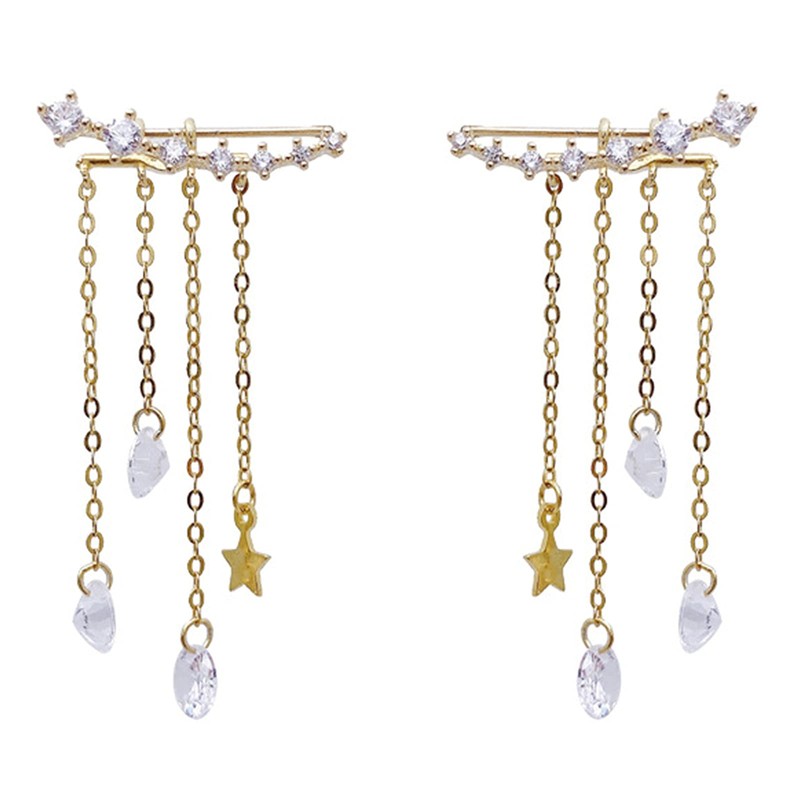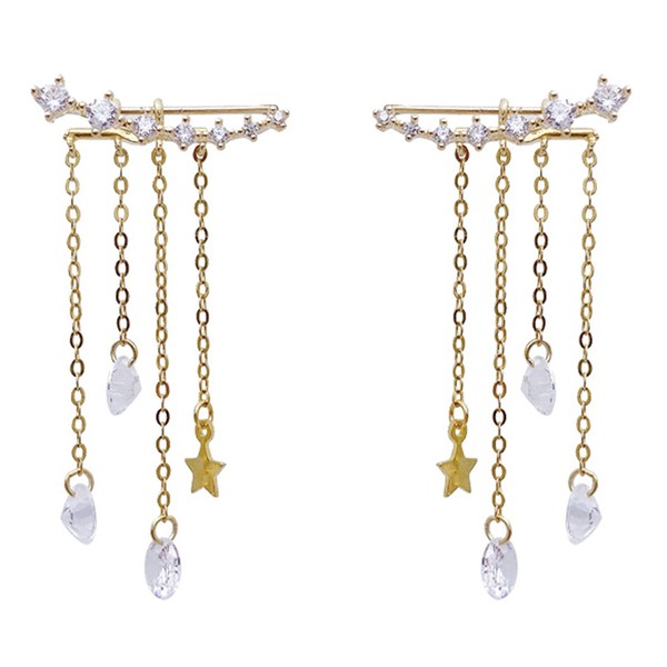 Star Ear Climber Earrings for Women,Two-Way Crystal Tassel Ear Jacket Earrings Bridemaid Earrings (Gold)