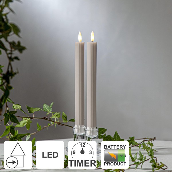 Star LED Stabkerze Flamme Stripe 2er-Set aus Wachs