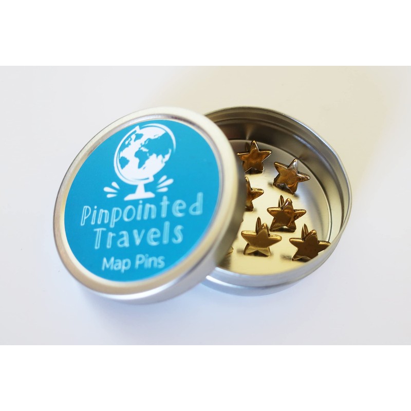 Mark Your Map with our gold or silver Star Map Pins. These miniature three-dimensional sculptures are perfect for marking all of your favorite places and travels. Available in Gold or Silver finish. Set of 10. Use on a map, corkboard, or bulletin board.