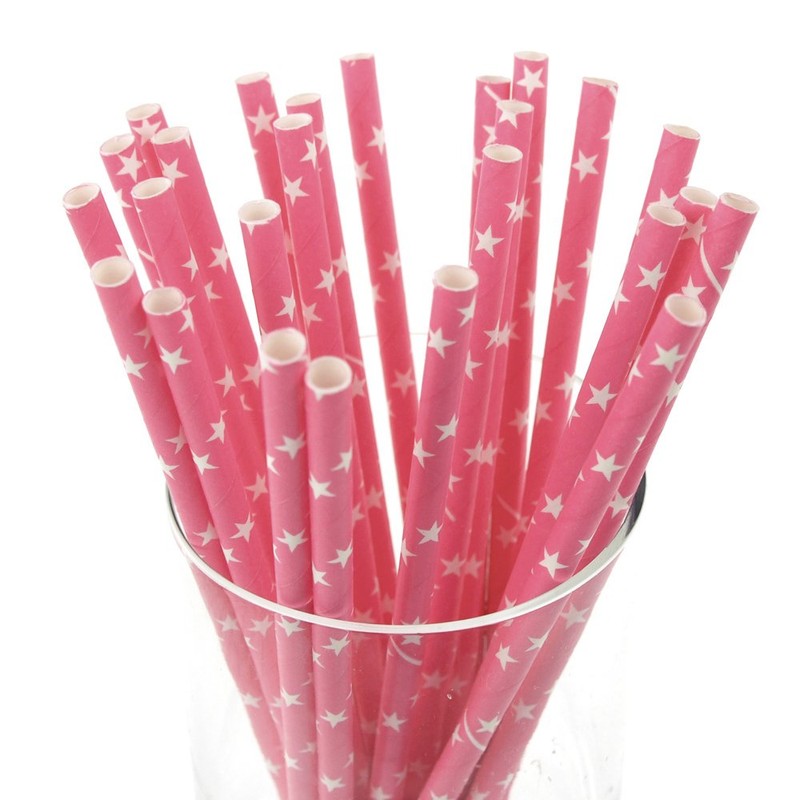 Star Paper Straws, 7-3/4-inch, 25-pack (White/Hot Pink)