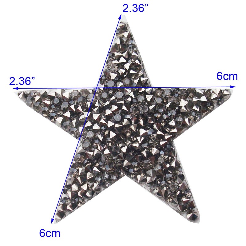 Star Patches Embroidered Sticker Rhinestone Iron On Badge,Crystal Applique Pack of 5 Pieces (ash Gray)