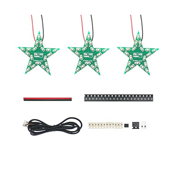 Star Shaped Soldering Practice Kit DIY Electronic Welding Exercise Board 3 Sets Green,Red,Blue Light with USB Power Cable
