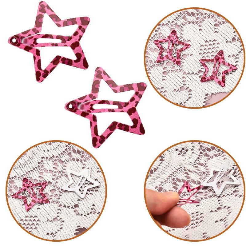 - Pink Leopard Point Hair Clips for Women Girls: The leopard hair clips for women adopt special and stylish design, fashionable and unique, the leopard point hair barrettes combines cool gothic style with cute and playful style, suitable for every hairstyle and outfit you wear, showcase the beauty of your hair perfectly and add your elegant charm and temperament, wonderful y2k star hair accessories for women girls, pink snap hair clips for girls women