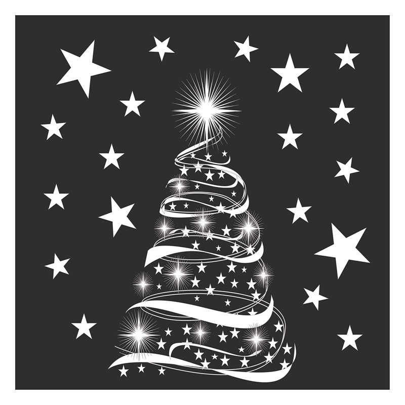 - Xmas Decor - Complement your Christmas decor with this beautifully designed window sticker. Perfect for any window or door this tree and stars window cling is contour cut and finished with our innovative double sided print.