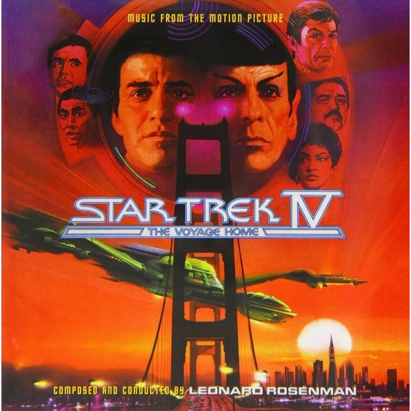 Track listing: 1. Logo/Main Title (02:52) 2. Starfleet Command/On Vulcan/Spock/Ten Seconds of Tension (01:40) 3. The Probe (01:16) 4. The Probe—Transition/The Take-Off/Menace of the Probe/Clouds and Water/Crew Stunned (03:08) 5. Time Travel (01:28) 6. Market Street* (04:38) 7. In San Francisco (02:01) 8. Chekov’s Run (01:21) 9. Gillian Seeks Kirk (02:42) 10. Hospital Chase (01:14) 11. The Whaler (02:00) 12. Crash/Whale Fugue (08:38) 13. Kirk Freed (00:44) 14. Home Again/End Credits (05:39) Total Score Time: 40:06 THE EXTRAS 15. Ballad of the Whale* (04:59) 16. Main Title (alternate) (02:56) 17. Time Travel (alternate) (01:29) 18. Chekov’s Run (album ending) (01:19) 19. The Whaler (alternate) (02:05) 20. Crash/Whale Fugue (album track) (08:15) 21. Home Again and End Credits (alternate) (05:16) 22. Main Title (album track) (02:40) 23. Whale Fugue (alternate) (01:05) 24. I Hate You** (contains explicit lyrics) (01:59) Total Extras Time: 32:32 *Performed by The Yellowjackets, Composed by Leonard Rosenman, Russell Ferrante and Jimmy Haslip. Total Duration: 01:11:24.