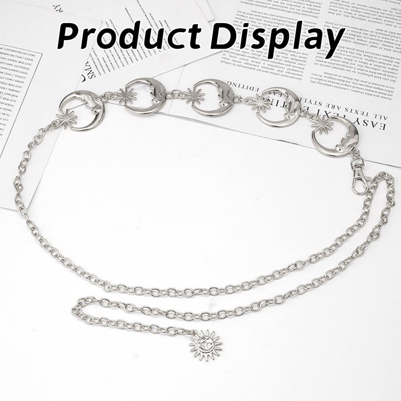 Star Waist Chain Belt For Women With Moon & Sun Pendants - Silver Body Chain Jewelry, Boho Decorated Skinny Waist Belt, Western Metal Chain Belt